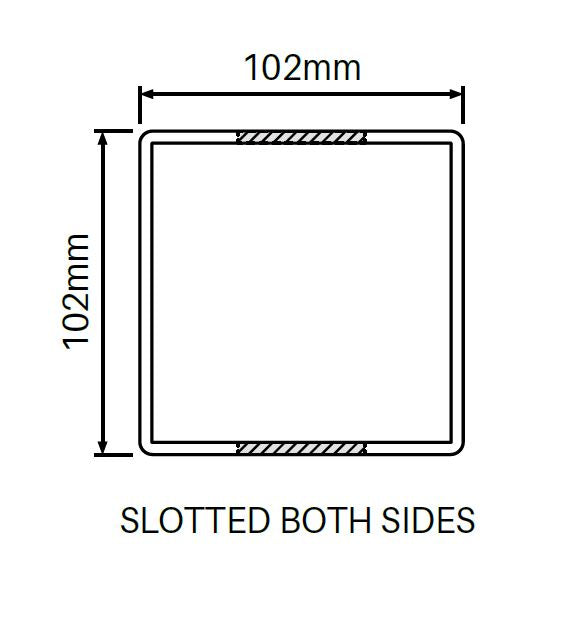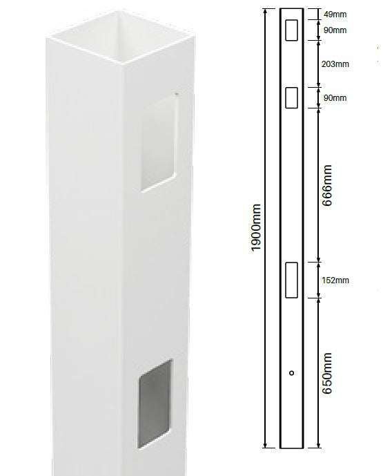 • Slotted holes both sides of post for insertion of panel top, mid and bottom rails
