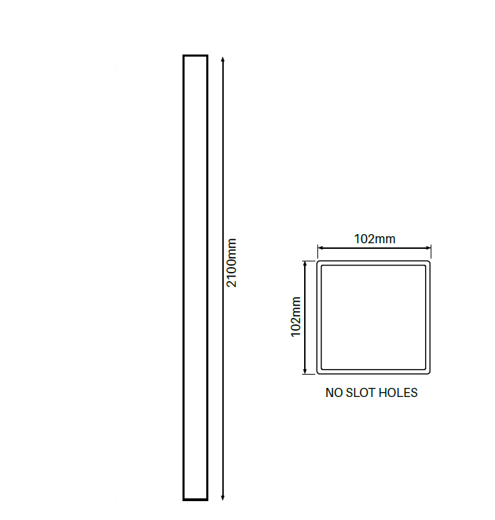 • 2100mmH x 102mmW x 102mmD; 3.8mm wall thickness