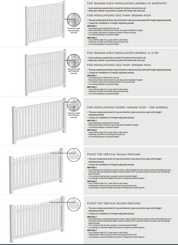 • Brackets may also be affixed to post for holding panel top/bottom rails