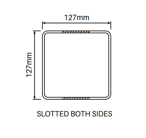 • 153mm high x 52mm wide slotted holes both sides of post for panel top/midrail/bottom rail insertion