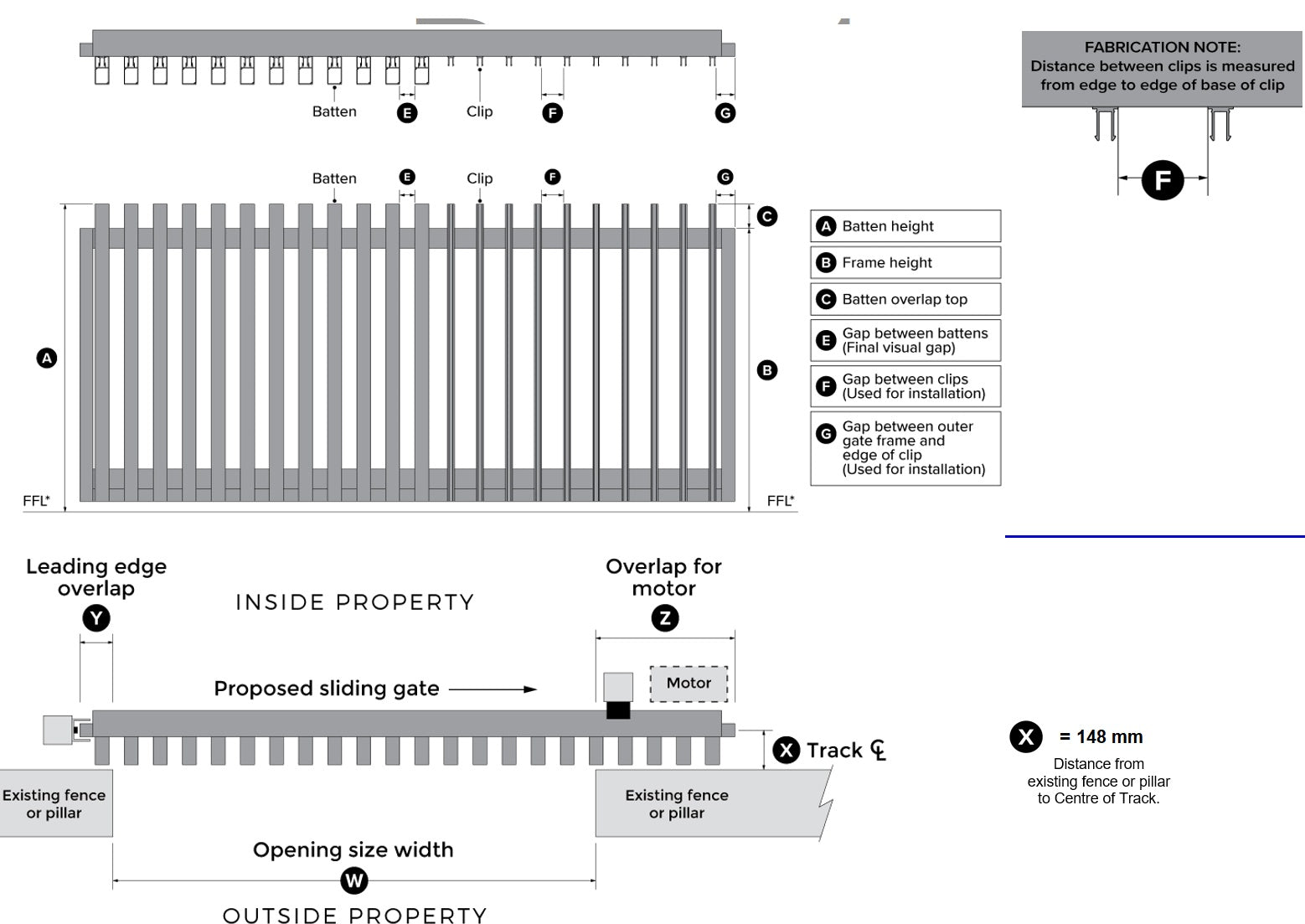 (Max Gate Size: 2000mm H x 6100mm W) Email your gate size to us once ordered.