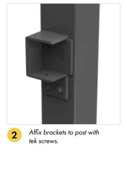 • 3 sided opening suits 40x40mm rails - bracket can be pre-installed to post then install BLADE panel horizontal rails into bracket opening