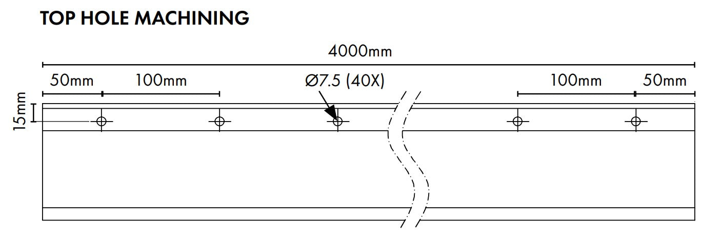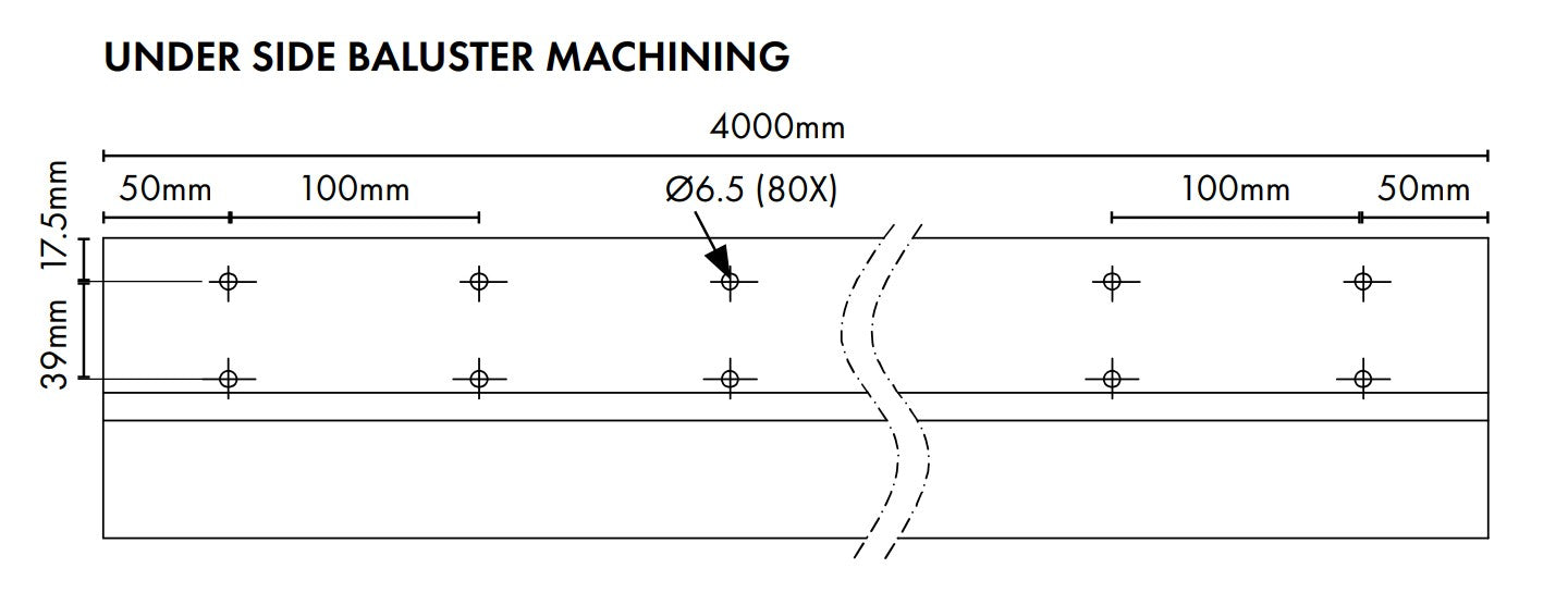 • Holes are pre-machined entire length of base to enable each baluster to receive 2 x fixings from underside & 1 x side fixing.