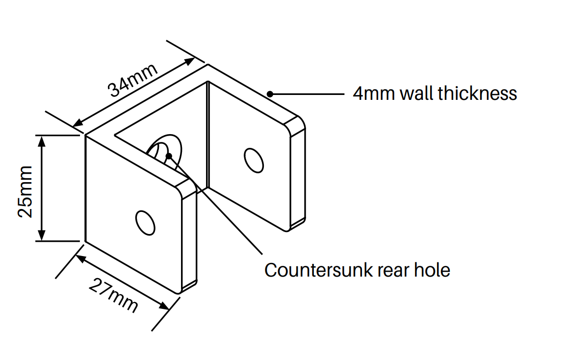 • Screws supplied for each bracket include 1 x countersunk SS304 screw for fixing to aluminium posts & 2 x panhead SS304 square drive screws for fixing the panels to the rails