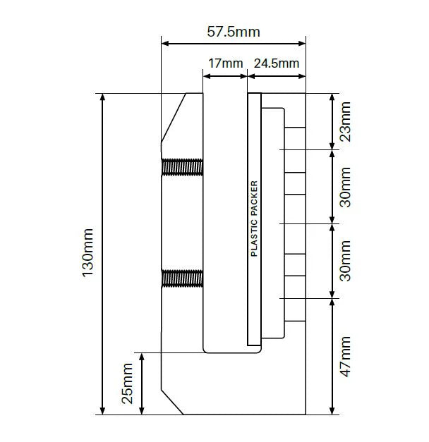 β’ Glass tilting HDPE packer tapered from 0.8mm to 1.3mm included to assist installation