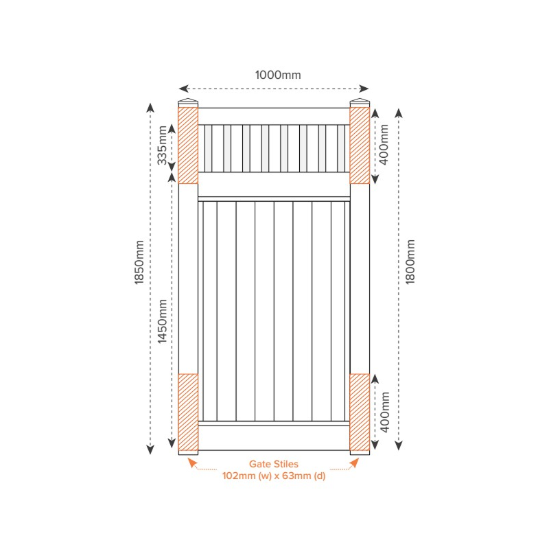 Fully assembled gate including 2 x flat top caps