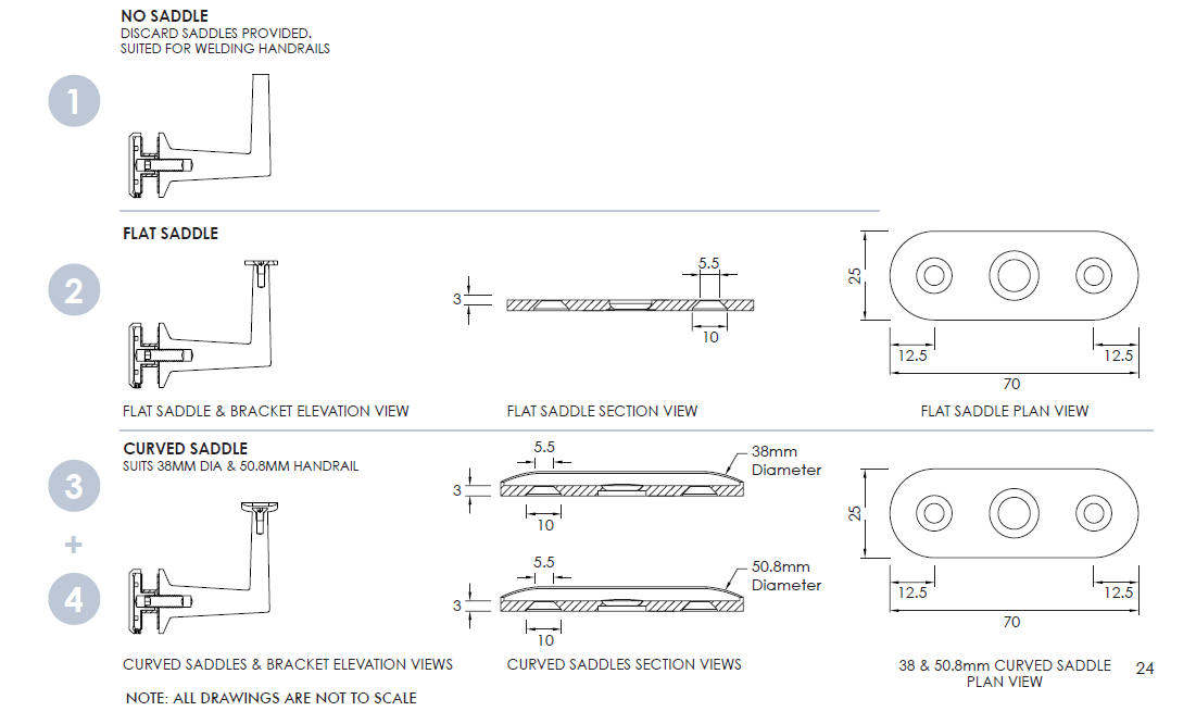 (flat saddle, 38 or 50.8mm curved saddles,)