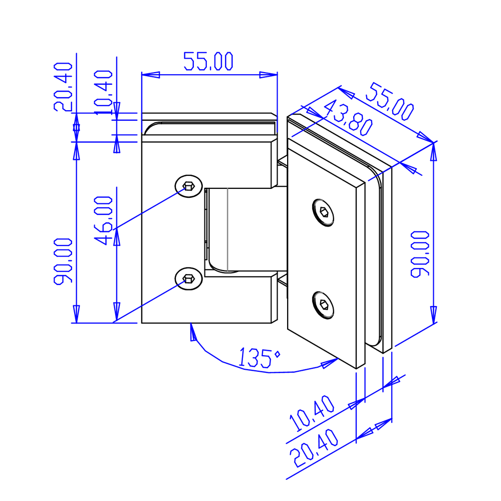 FORGE SHOWER HINGE GLASS TO GLASS 135 Degrees 10mm glass - Chrome