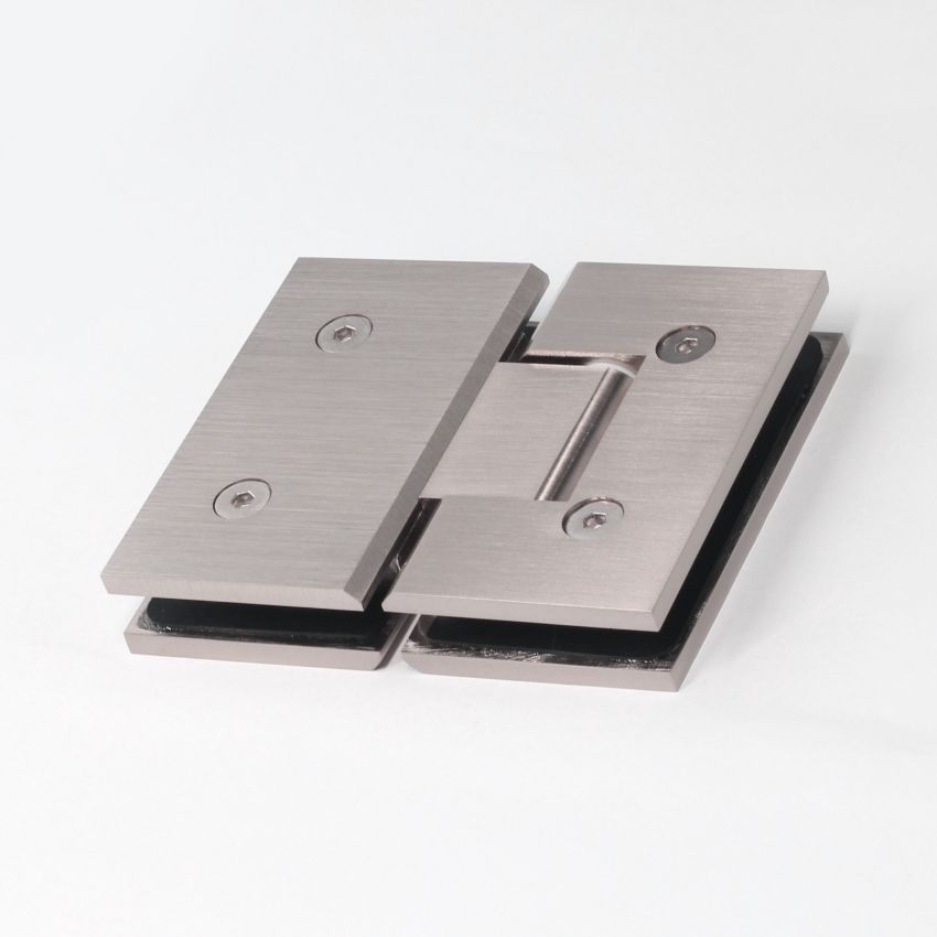 FORGE SHOWER HINGE HEAVY DUTY GLASS TO GLASS 180 Degrees 10mm and 12mm glass glass - Brushed Nickel