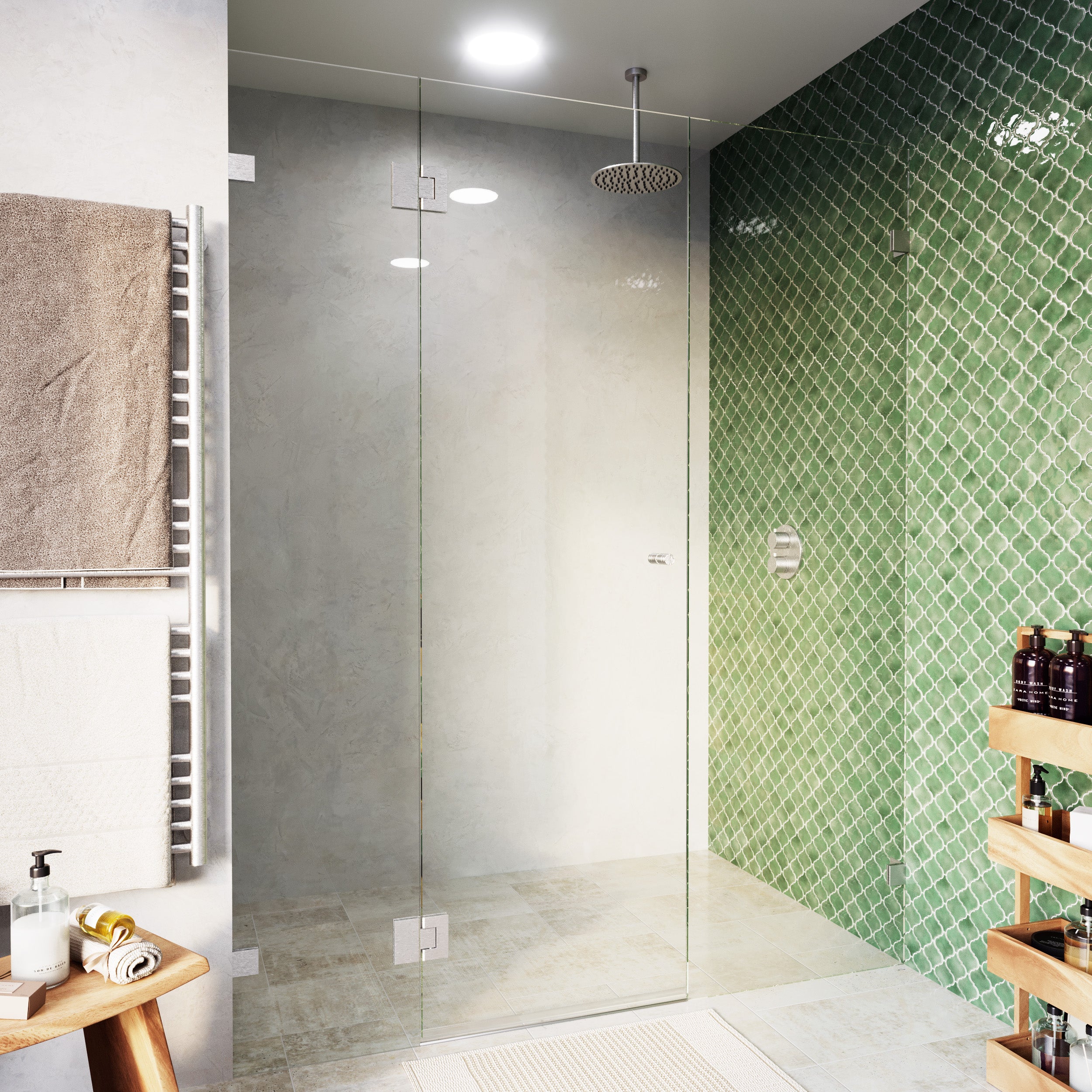 The Glass House Frameless Wall to Wall Shower Screen includes Grade A 10mm thick toughened safety glass. Choose from a wide range of sizes to create a multitude of different shower configurations and pair with the most extensive range of shower hardware available in the industry. Choose your preferred size from the options.