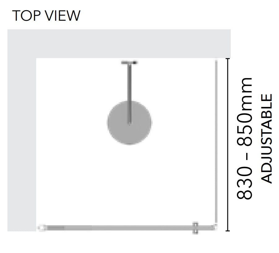 850mm x 1950mm adjusts in wall channel from 830 - 850mm