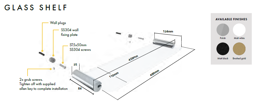 • Sturdy shelf to suit a variety of bathroom storage applications