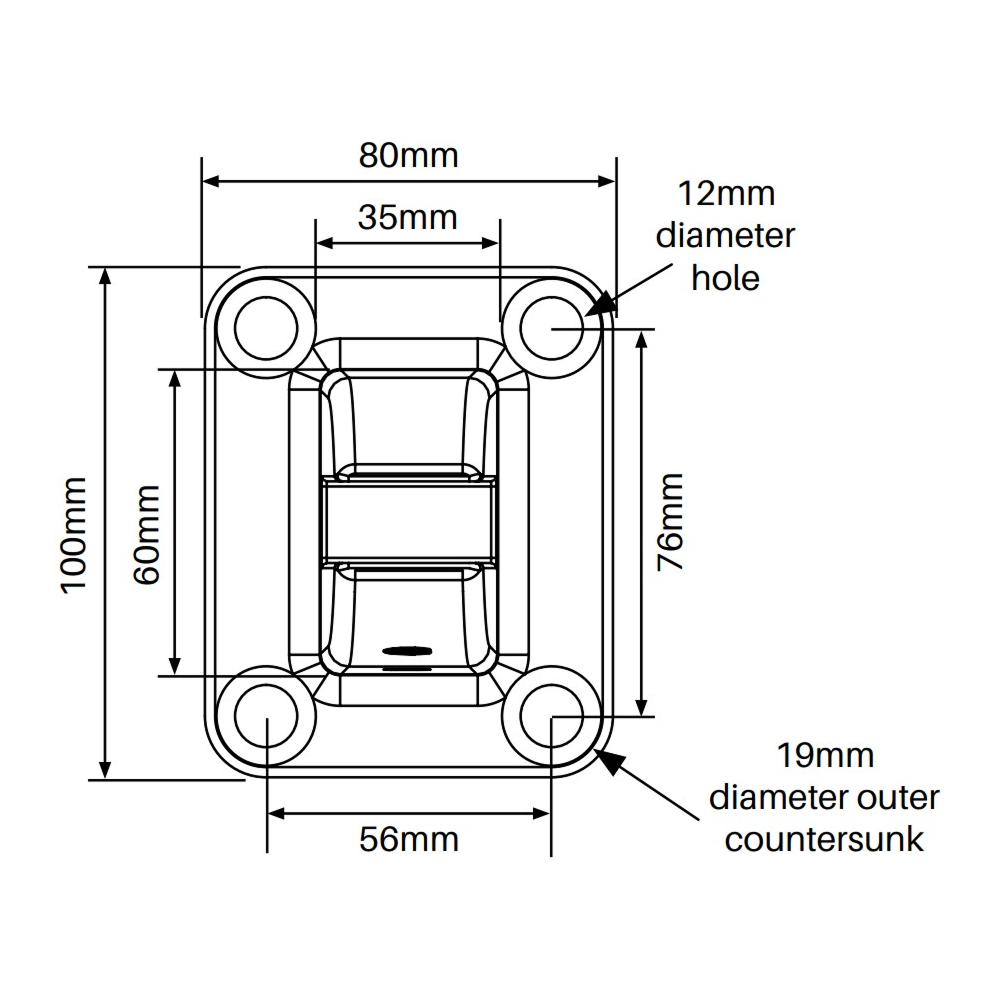 • Base plate features 4x 12mm countersunk holes to enable flush fixings