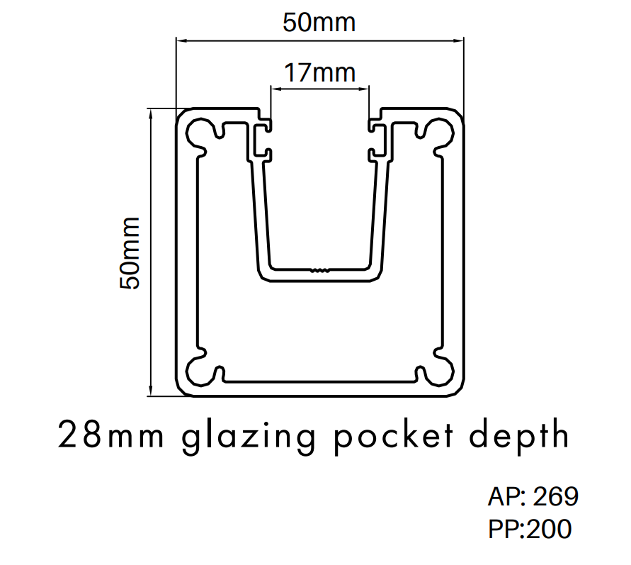 • Suitable for 8, 10 or 12mm thick glass with applicable glazing rubbers
