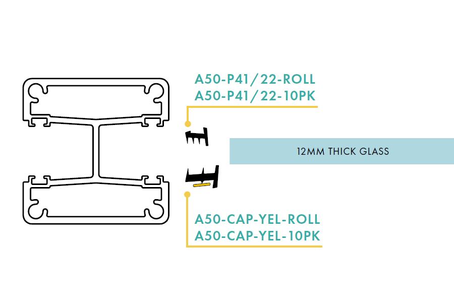 • Rubber glazed into 1 side of post extrusion pocket and/or glazing rail (opposite side to captive wedge rubber)