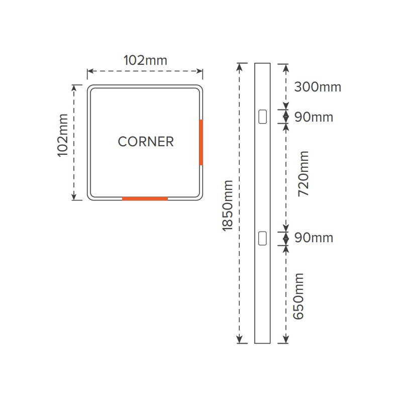 | Dimensions | 1900mm (h) x 102mm(w) x 102mm (d) |