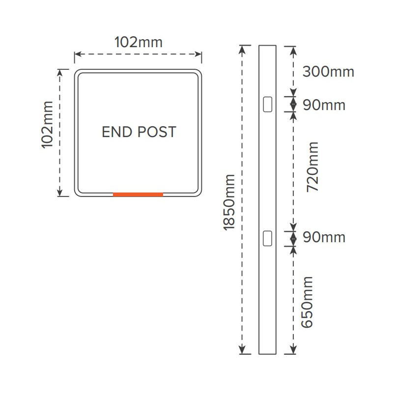 | Dimensions | 1900mm (h) x 102mm(w) x 102mm (d) |