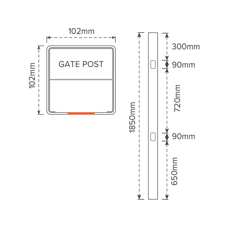 | Dimensions | 1900mm (h) x 102mm(w) x 102mm (d) |