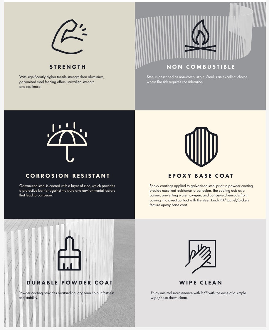 Heavy-Duty Strength – 32mm pickets with 3mm steel wall thickness, welded to a robust plinth.