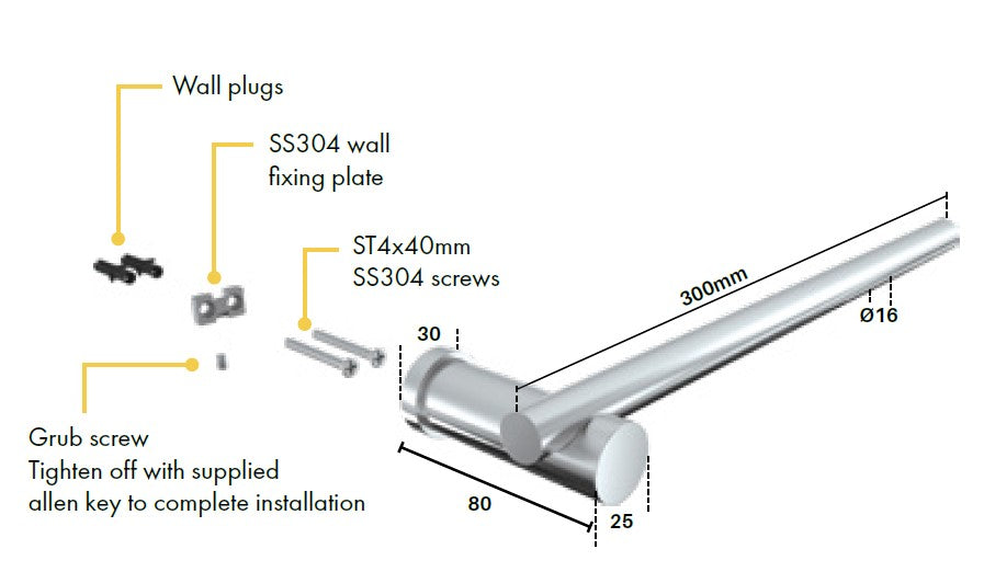 • 2 x fixings into wall to prevent chance of towel rail rotating
