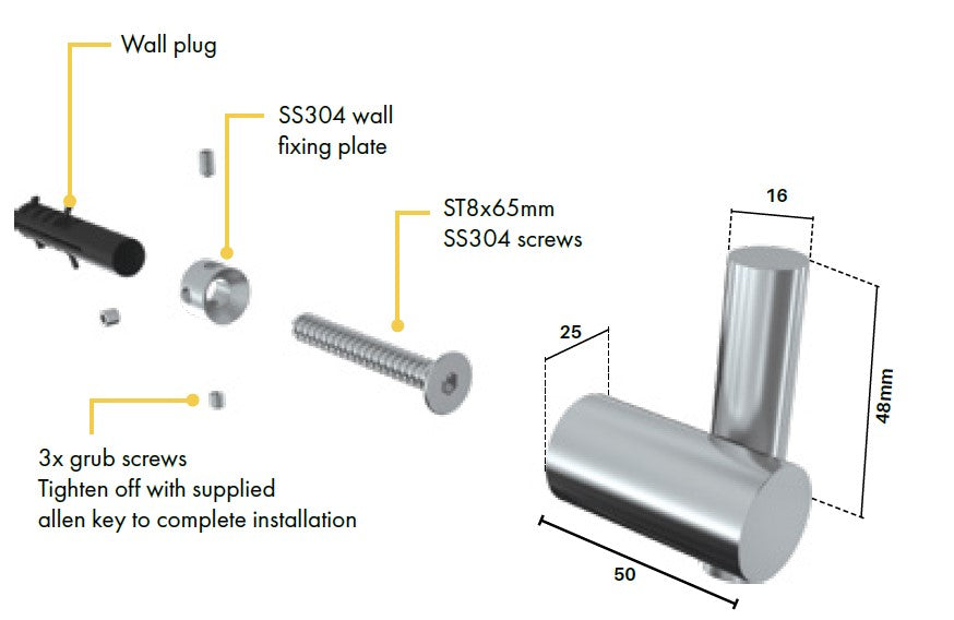 • Includes fixing screws, wall plug & allen key
