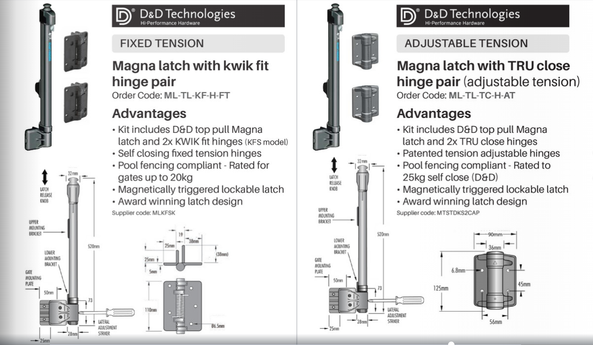ADJUSTABLE TENSION 1 Magna Latch and 2 Tru Close Hinges (MTSTDKS3LA)