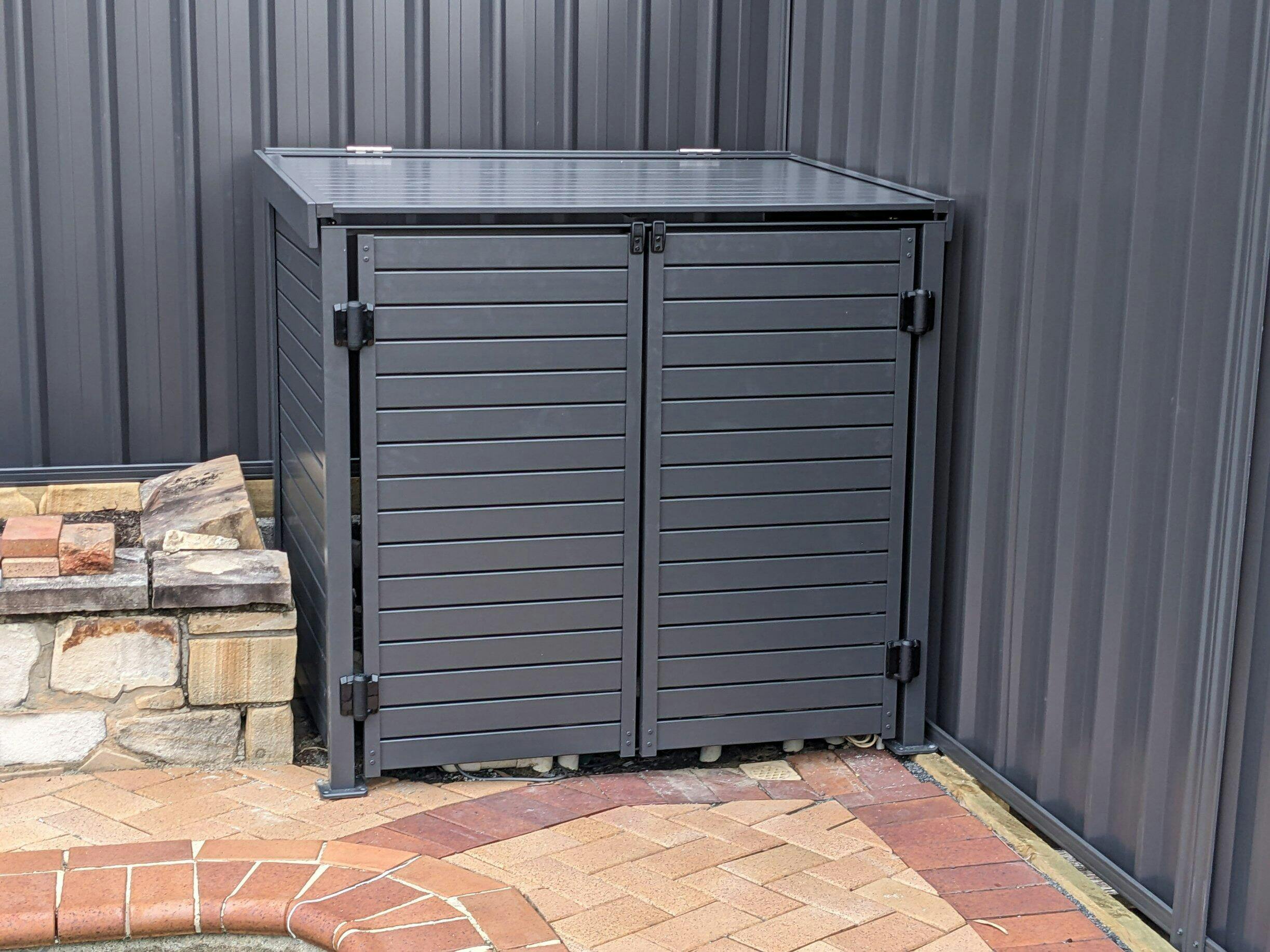 Introducing Our Elegant Equipment Enclosure - a Perfect Blend of Sophistication and Style, Ideal for Concealing Pool Filters, Rubbish Bins, and Air Conditioners.