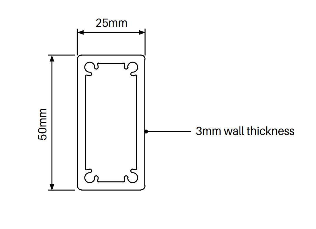 • 50x25mm post profile matches pickets to give a continuous 'batten' look