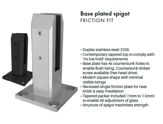 Base plate version has 4 x countersunk holes to enable flush fixing,