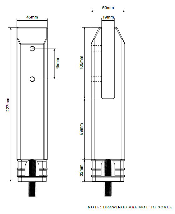 Core drill version has a M10 bolt at bottom which enables 60mm of vertical height adjustment, a contact point for earthing and extra anchoring in footings. s