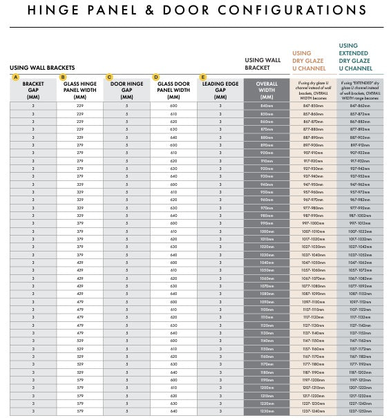 • Glass Hinge Panel at 2050mm high with superior edgework