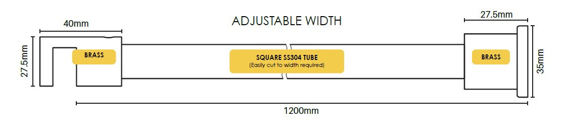 • Width adjustable up to 1200mm - simply cut stainless tube to required length
