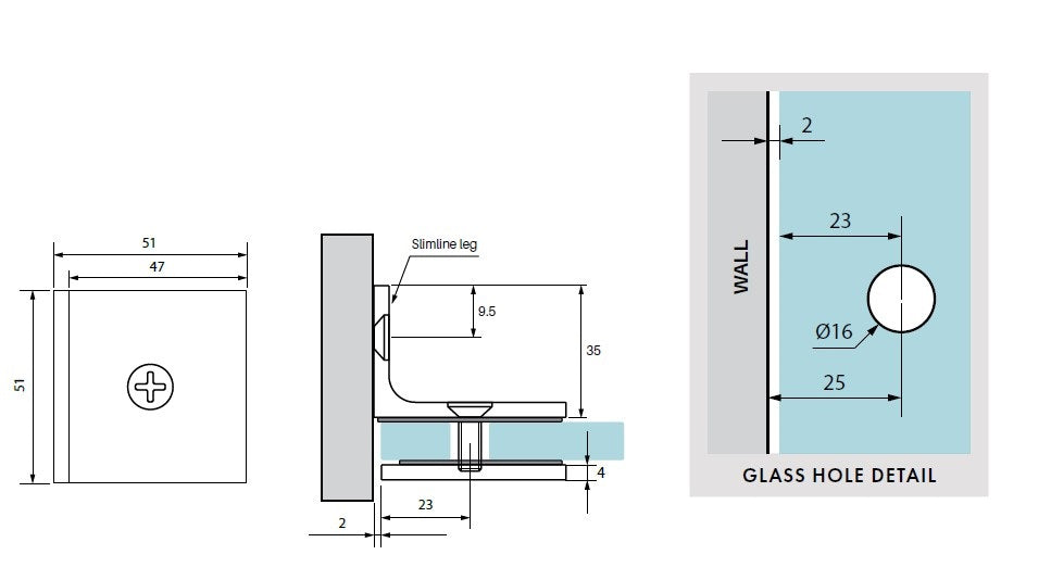 • Mechanical fixing of glass to wall • Slimline L offset wall fixing (SS304 wall fix screw... Read More