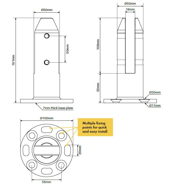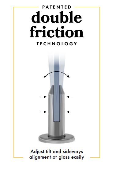 • Recessed double friction plates enable fast install plus tilt and sideways adjust of frameless glass